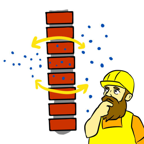 Так ли полезно «дыхание» стен? Для этого ученые провели ряд экспериментов. Например, выяснили, что за сутки голые кирпичные стены пропускали не более 1 кг воды. Стены, покрытые штукатуркой и обоями «дышали» бы ещё меньше. При этом зимой требуется удалять из помещения более 10 кг влаги. Обычно этот процесс осуществляется с помощью конвекции через окна и вентиляционные системы.